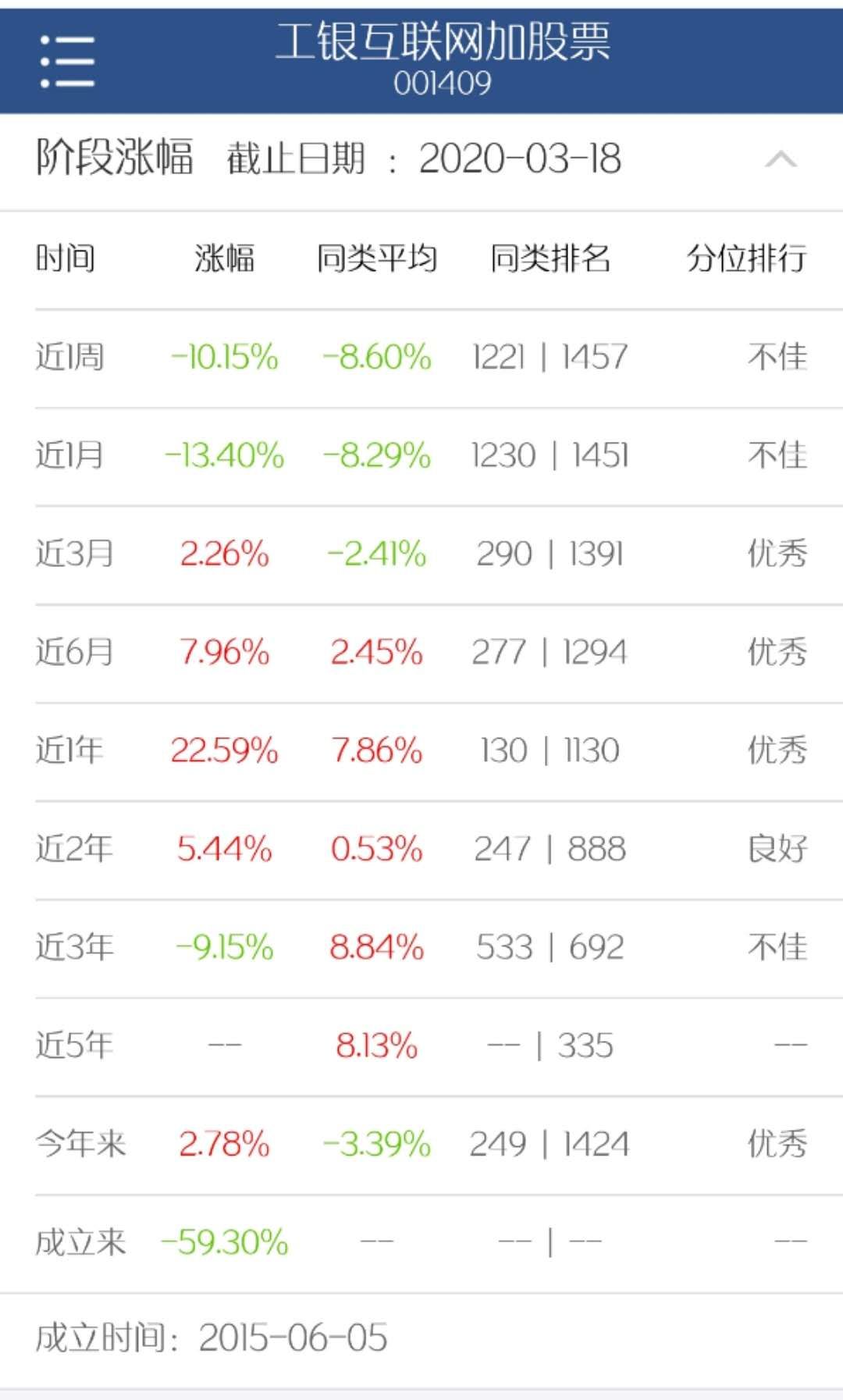 Wind数据显示,爆款发行的网红基金“工银瑞信互联网基金”自成立以来,截至2020年3月18日,累计净值只剩下0.4070元,累计亏损达到59.30%。已成为史上最差的基金之一。