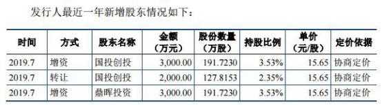2019年6月12日,鼎晖投资、国投创投与公司签署《投资协议》,约定鼎晖投资和国投创投分别以3000万元认购公司新增191.7230万股。