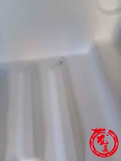 在第3台冰箱送来后发现,冰箱内有放过物品遗留的污垢痕迹,还有经过擦洗的明显痕迹。在第4台冰箱送来后发现,外包装上有打开过的痕迹,纸箱内密封条与防震填充物泡沫板等材料缺失。第5台送来后,发现在冰箱门上有一处明显的磕碰凹坑。