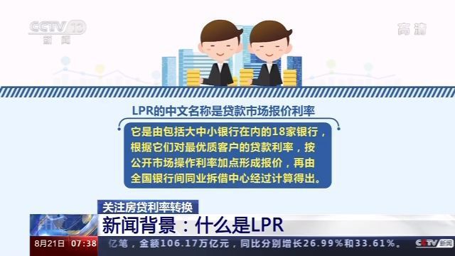 原来,各家银行发放贷款的利率,都是根据央行发布的贷款基准利率,上浮或下浮一定比例形成。去年8月,央行决定进一步推动利率市场化改革,完善贷款市场报价利率形成机制,每月20日定期公布LPR,商业银行则根据LPR加点确定各自的贷款利率。目前,LPR包括1年期和5年期以上两个品种。