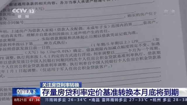房贷对于不少家庭来说,都是每个月一项重要的支出。根据中国人民银行的公告,到本月底,存量房贷的定价基准转换就将结束。也就是说,如果您家有房贷的话,这个月底前要把原来按央行基准利率上浮或下浮的房贷,转换为跟随LPR浮动的计算方式,或者转换为固定利率房贷。