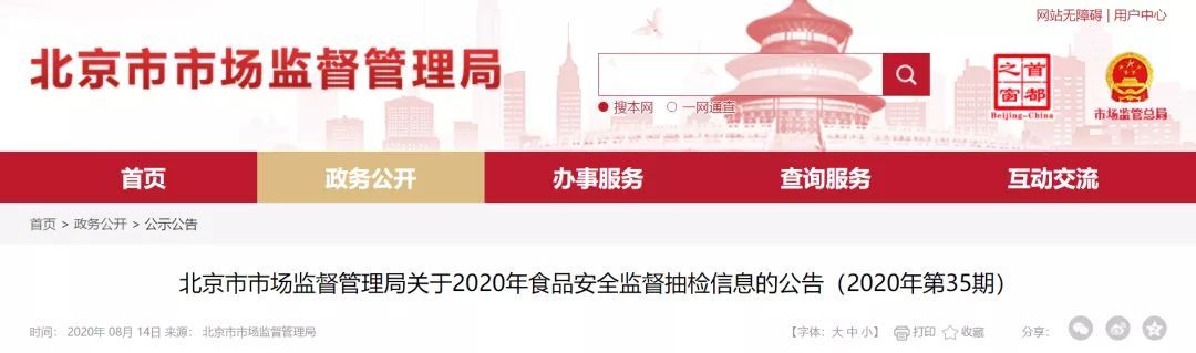 8月14日,北京市市场监督管理局发布了《关于2020年食品安全监督抽检信息的公告(2020年第35期)》,根据食品安全国家标准及国家有关规定检验和判定,其中合格样品872批次,不合格样品12批次。